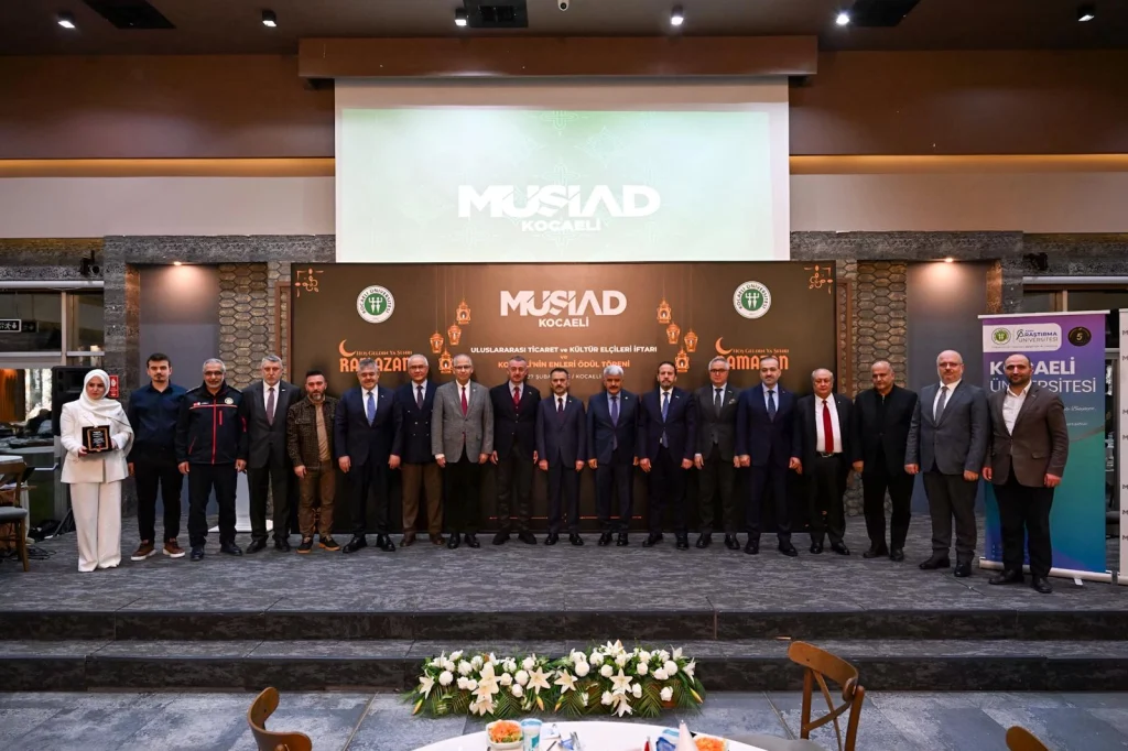 Kocaeli Büyükşehir Belediye Başkanı Tahir Büyükakın, Yunanistan, Bulgaristan ve Kuzey Makedonya’daki temaslarını tamamlayarak yurda döndü. MÜSİAD Kocaeli Şubesi’nin düzenlediği Uluslararası Ticaret ve Kültür Elçileri İftarı’na katıldı. Şube Başkanı İzzet Tanrıkulu’nun ev sahipliğindeki iftarda Kocaeli Valisi İlhami Aktaş, AK Parti Kocaeli Milletvekilleri Prof.Dr. Sadettin Hülagü, Veysel Tipioğlu, AK Parti İl Başkanı Şahin Talus, MÜSİAD Genel Başkan Yardımcısı Abdülkadir Çınar da yer aldı. Programda Kocaeli’nin ihracatına katkıda bulunan iş insanları ile gönüllü kültür elçilerine plaket takdim edildi.