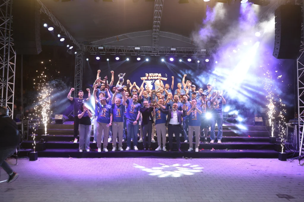 Türkiye Basketbol Ligi’nde şampiyonluğa ulaşan Çayırova Belediyesi Basketbol Takımı, bu büyük başarısını coşkulu bir kutlamayla taçlandırdı. Şehir turuyla başlayan şampiyonluk sevinci, Çayırova Kapalı Spor Salonu’nda düzenlenen kupa töreni ve ardından belediye otoparkındaki büyük buluşmayla zirveye çıktı. Binlerce taraftar, takımlarıyla birlikte bu tarihi anlara tanıklık etti.